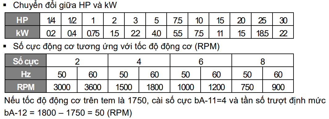 - bA.11 (Pole Number): Số cực động cơ (thường là 4 cực cho tốc độ 1450-1500 rpm).